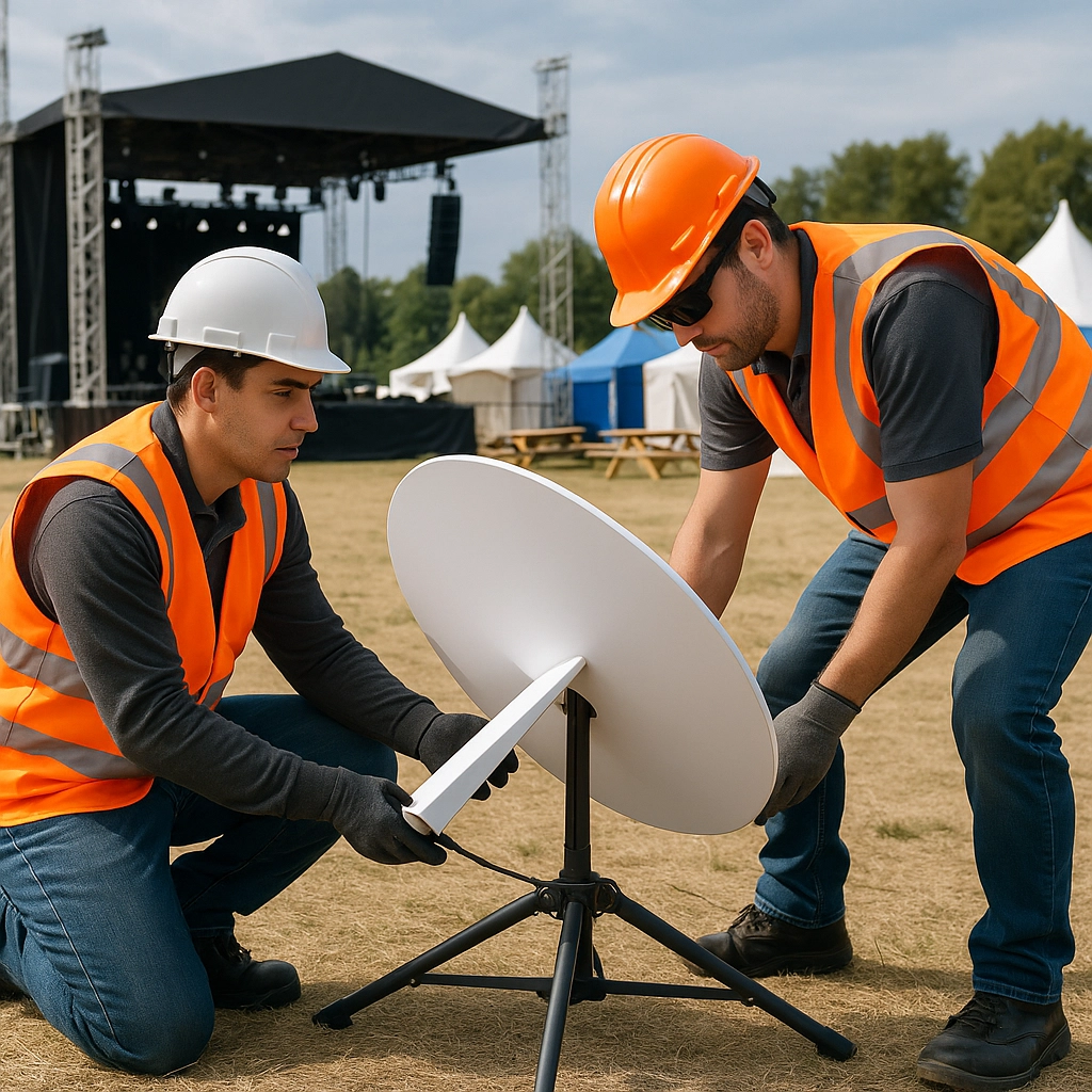 Equipment Positioning: The satellite dish requires unobstructed views of the southern sky (in the Northern Hemisphere) and stable mounting. Professional installation teams handle alignment and optimisation, but event organisers should ensure adequate space allocation and access for technicians.